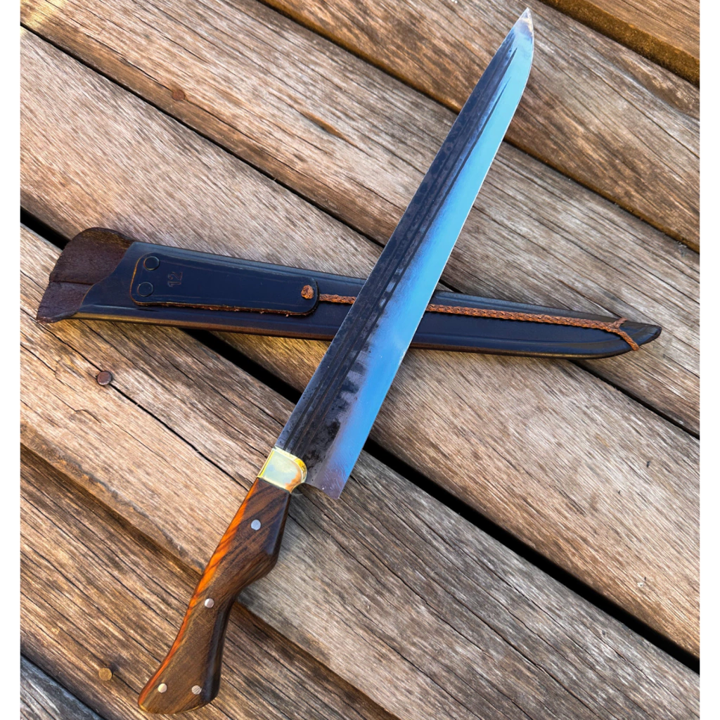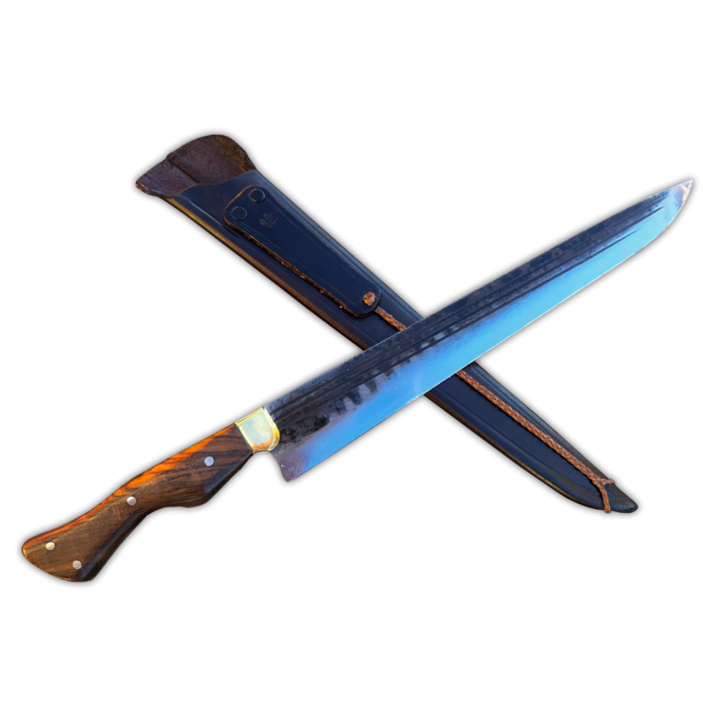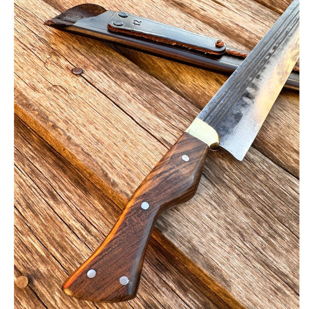 Essa faca de 12 polegadas para churrasco em família de aço carbono é simplesmente incrível! Com sua lâmina afiada e resistente, ela é perfeita para cortar carnes suculentas e saborosas no churrasco em família.