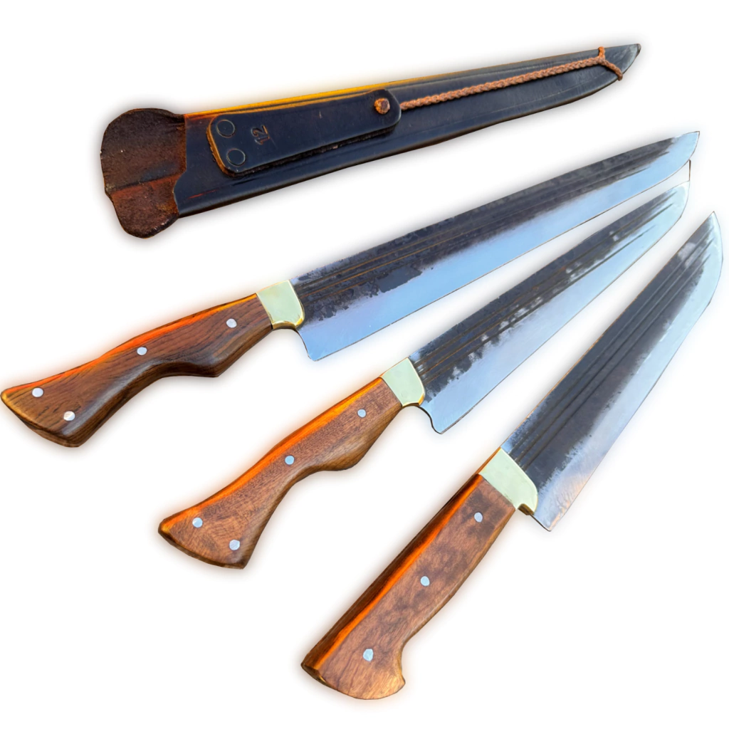 Não perca mais tempo e adquira já esse kit de facas de aço carbono com línguas de ximango e faca estilo churrasco!