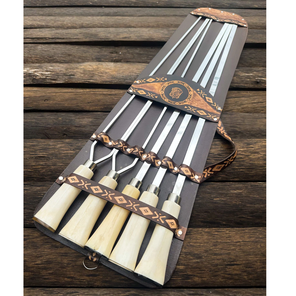 🐂 Kit de Espetos Rústicos – Cabo de Osso Natural (Tradição Campeira)
