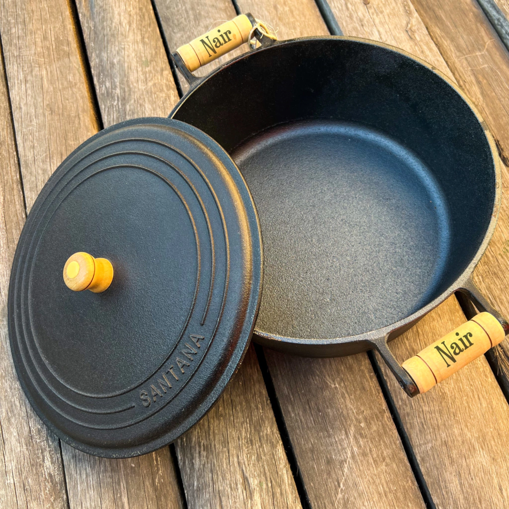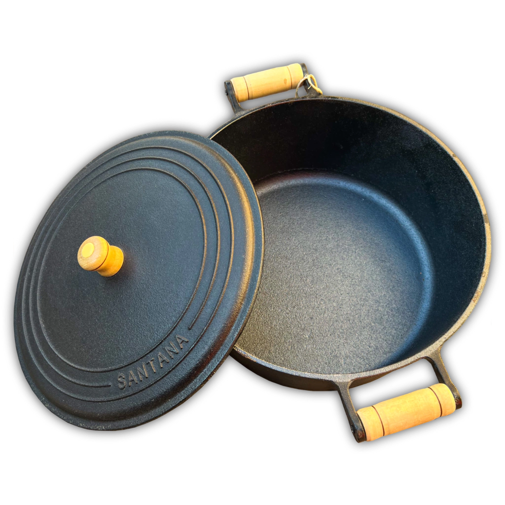 A panela de ferro fundido com alça de madeira e tampa tem o poder de transformar a cozinha em um lugar especial. Ela é capaz de criar uma atmosfera acolhedora e nostálgica, lembrando das refeições em família e das comidas preparadas pelos avós.